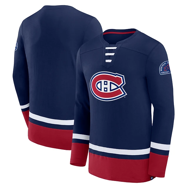 Men's Fanatics Navy Montreal Canadiens Lace-Up High Point Long Sleeve T-Shirt
