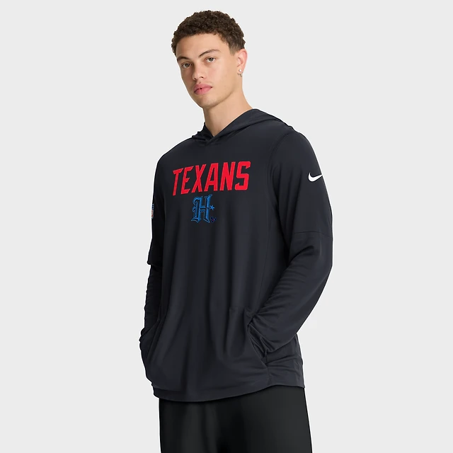 Men's Nike Blue Houston Texans Sideline Pass Accuracy Dri-FIT Long Sleeve Hoodie T-Shirt