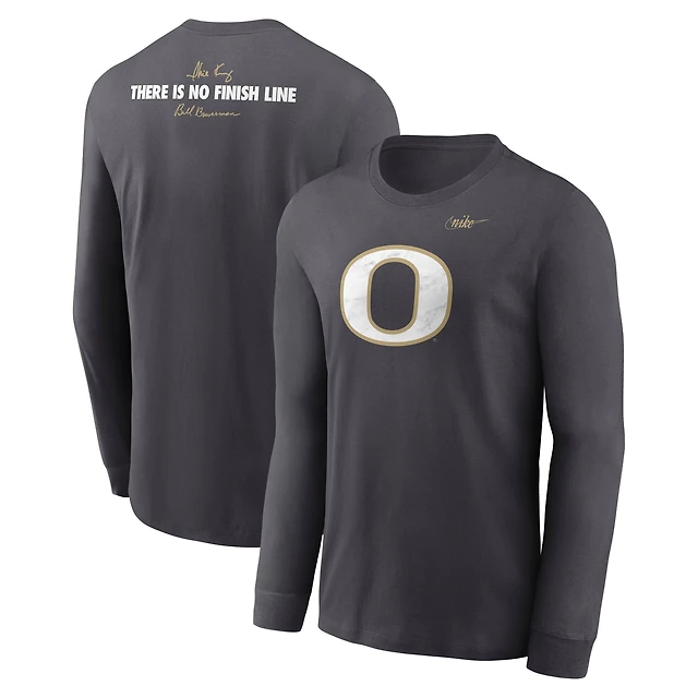 Men's Nike Anthracite Oregon Ducks Shoe Duck There Is No Finish Line Dri-FIT Long Sleeve T-Shirt