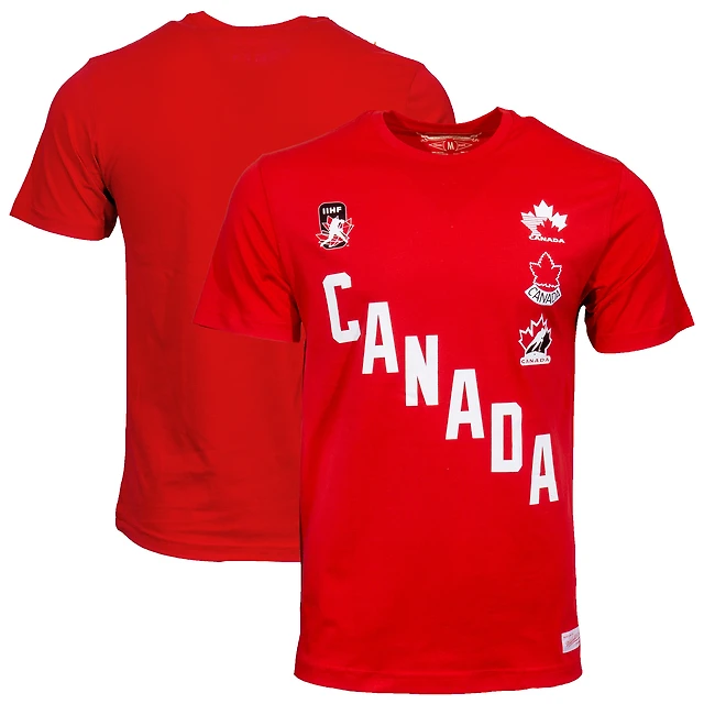 Men's Mitchell & Ness Red Hockey Canada IIHF World Junior Championship Diagonal T-Shirt