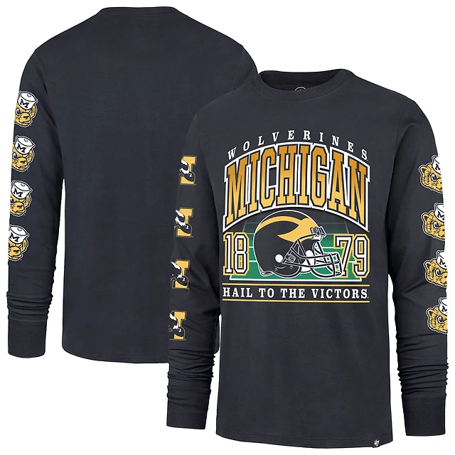 Men's '47 Navy Michigan Wolverines Go Big Long Sleeve T-Shirt