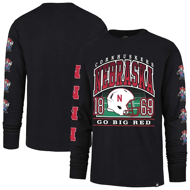 Men's '47 Black Nebraska Huskers Go Big Long Sleeve T-Shirt