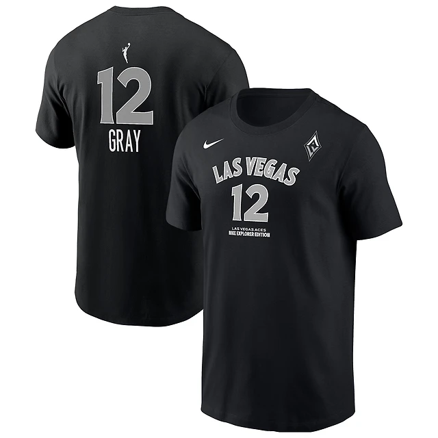 Men's Nike Chelsea Gray Black Las Vegas Aces Explorer Edition Name & Number T-Shirt