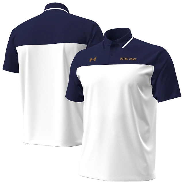 Men's Under Armour White/Navy Notre Dame Fighting Irish Green Blocked Polo