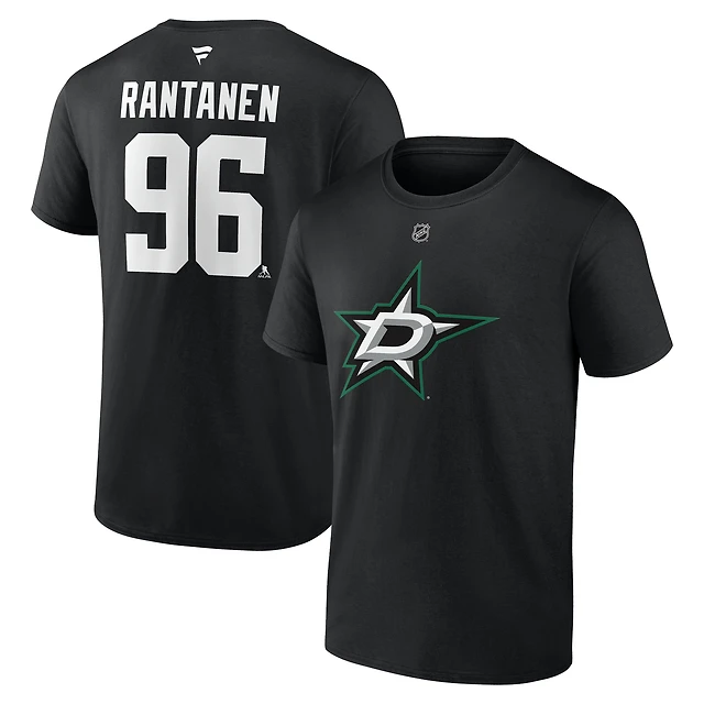 Men's Fanatics Mikko Rantanen Black Dallas Stars Authentic Stack Name & Number T-Shirt