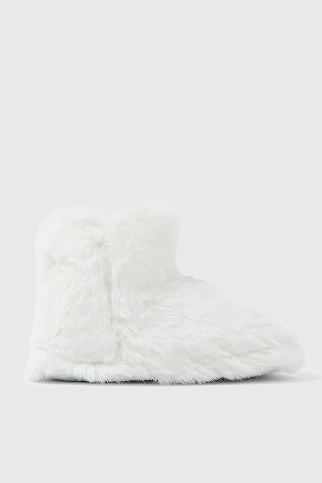 Ardene Faux Fur Slippers in Light | Size Small | Polyester