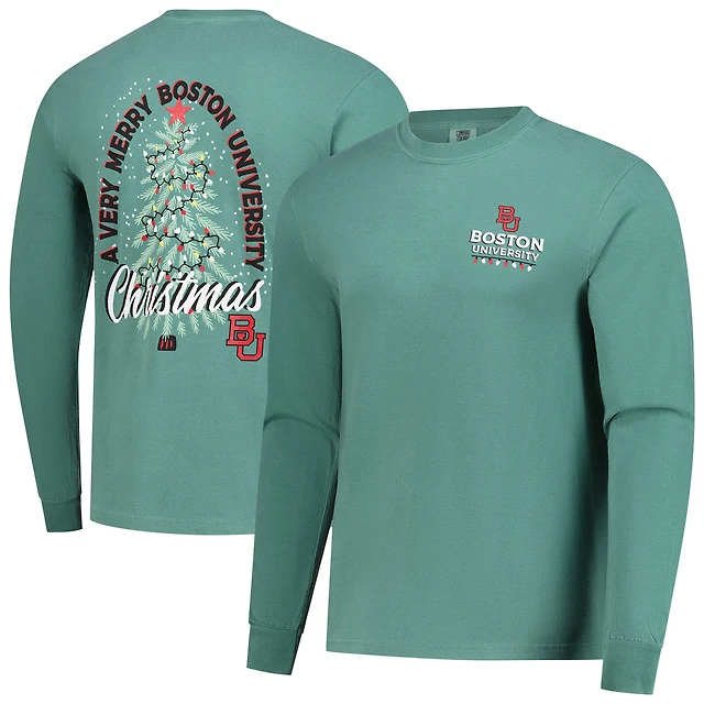 Men's Image One Light Green Boston University Holiday Long Sleeve T-Shirt