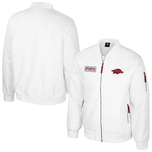 Men's Colosseum Arkansas Razorbacks White Rabbit Full-Zip Bomber Jacket