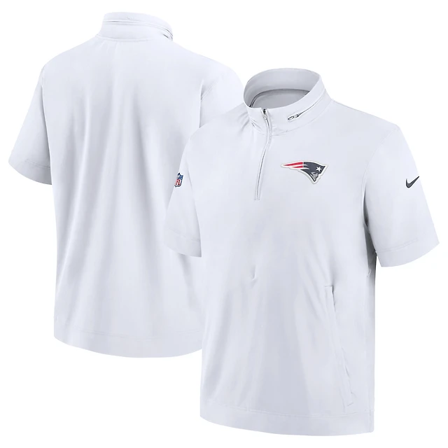 Men's Nike White New England Patriots Sideline Coach Short Sleeve Hoodie Quarter-Zip Jacket