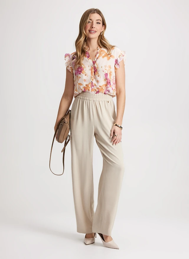 Ruffle Floral Blouse & Bengaline Ankle Pants
