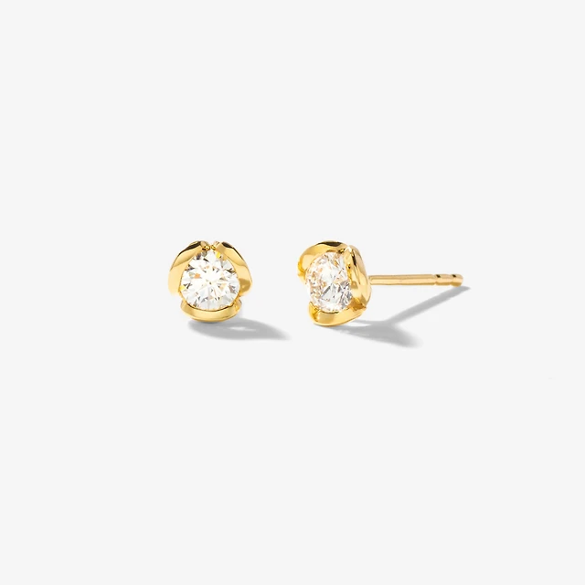 Tension Set Solitaire Canadian Diamond Stud Earrings in 14K Yellow Gol