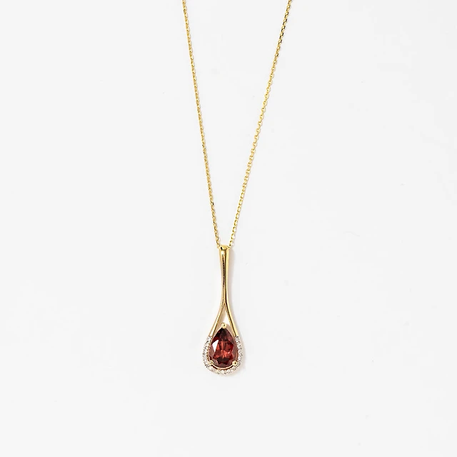 Garnet Hook Earrings with Diamond Accents in 10K Yellow Gold