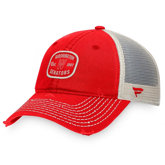 Men's Fanatics Red Washington Senators Distressed Patch Trucker Adjustable Hat
