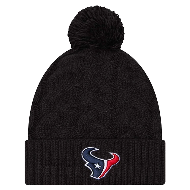 Women's New Era Black Houston Texans Cable Cuffed Knit Hat with Pom