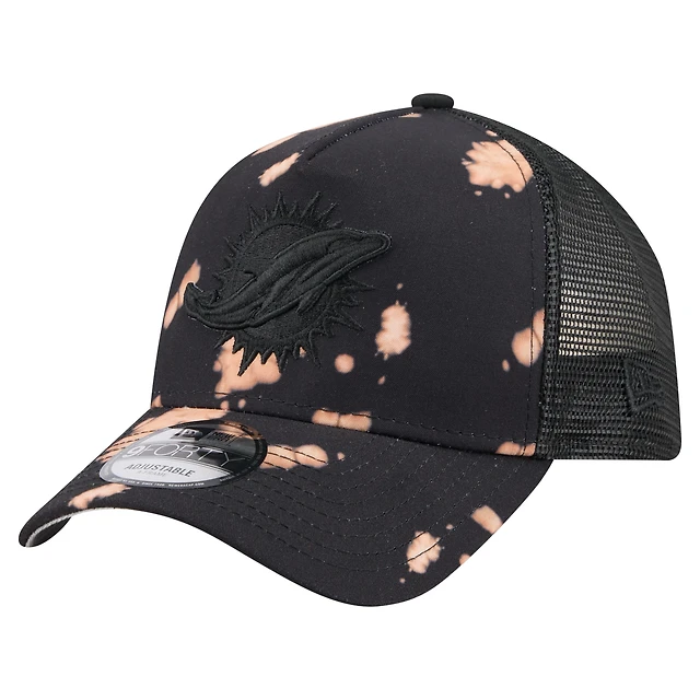 Men's New Era Black Miami Dolphins Bleached 9FORTY A-Frame Adjustable Hat