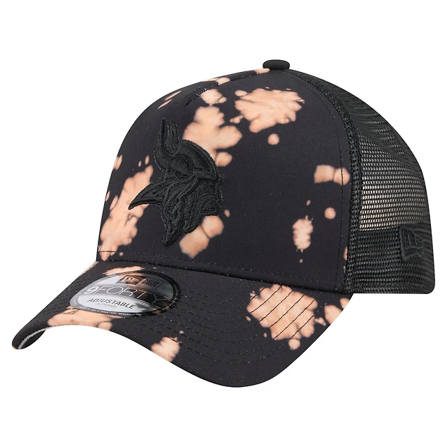 Men's New Era Black Minnesota Vikings Bleached A-Frame 9FORTY Trucker Adjustable Hat