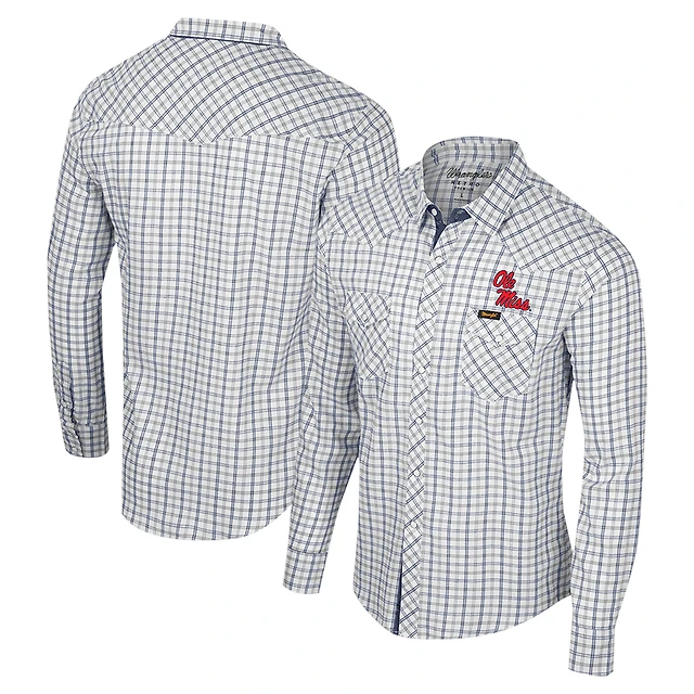 Men's Colosseum x Wrangler White Ole Miss Rebels Plaid Window Pane Long Sleeve Full-Snap Shirt