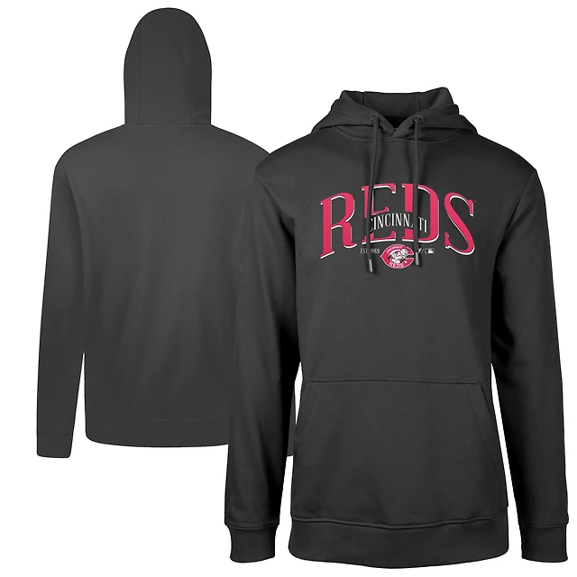 Men's Levelwear Black Cincinnati Reds Cooperstown Collection Podium Retro Pullover Hoodie