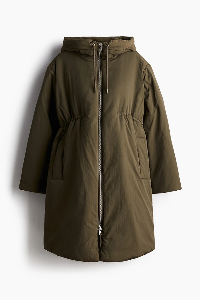 Stretch Vegan Down Coat & Pointelle Knit Sweater