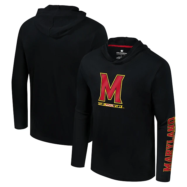 Men's Colosseum Black Maryland Terrapins Logo Lockup Active Blend Long Sleeve T-Shirt Hoodie
