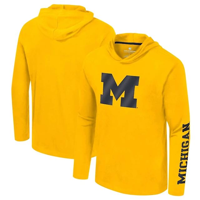 Men's Colosseum Maize Michigan Wolverines Logo Lockup Active Blend Long Sleeve T-Shirt Hoodie