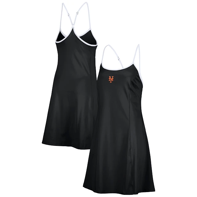 Women's Lusso Black New York Mets Nakita Strappy Scoop Neck Dress