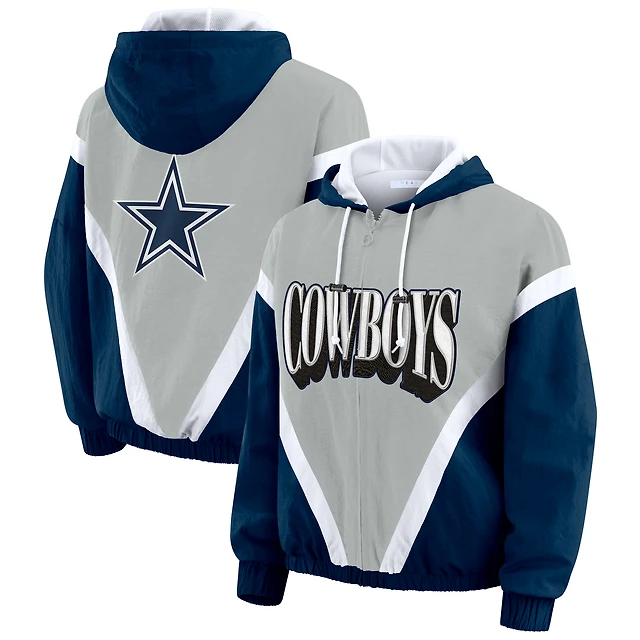 Women's WEAR by Erin Andrews Navy/Gray Dallas Cowboys Plus Retro Crinkle Full-Zip Hoodie Windbreaker Jacket