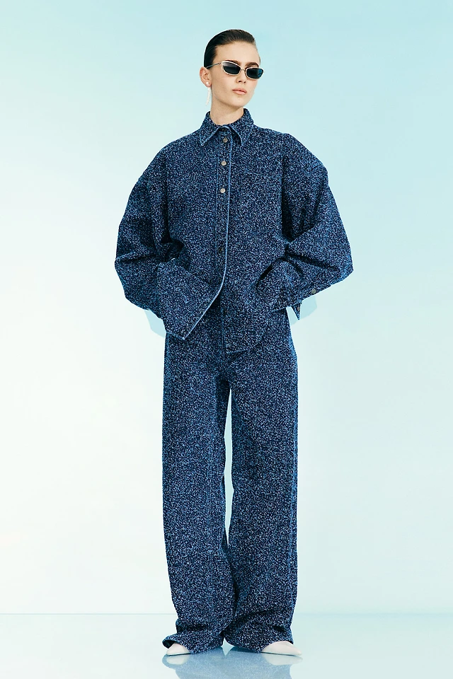 Metallic Button Denim Jacket & Olivia Wide-Leg Denim Pants