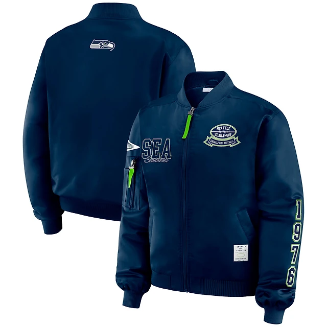 Women's WEAR by Erin Andrews College Navy Seattle Seahawks Patch Full-Zip Bomber Jacket