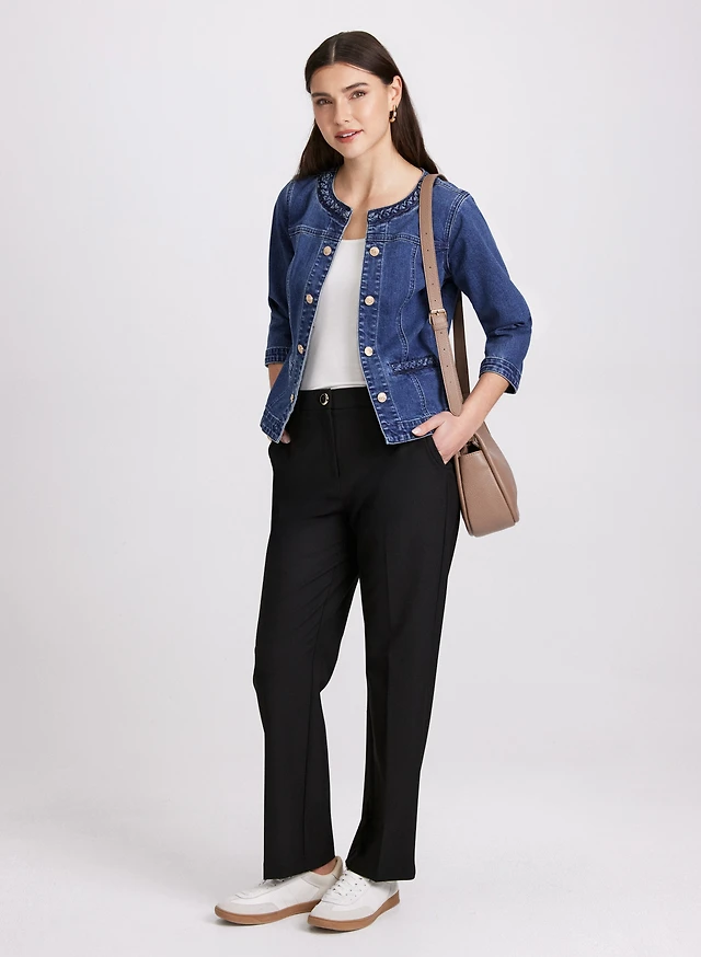 Braided Trim Denim Jacket & Mia Straight-Leg Pants - Regular