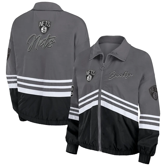 Women's WEAR by Erin Andrews Silver Brooklyn Nets Vintage Full-Zip Windbreaker