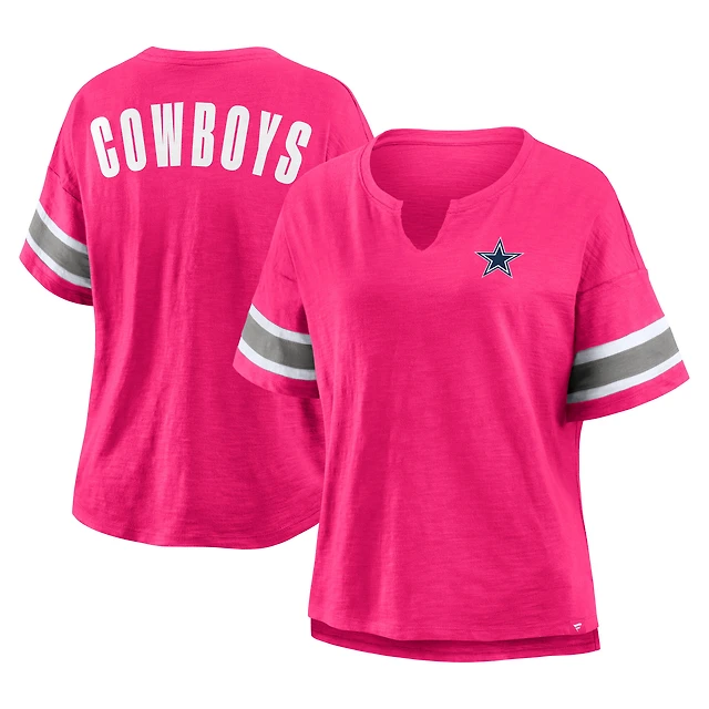 Women's Fanatics Pink Dallas Cowboys Redzone Bling Stripe Sleeve Notch Neck T-Shirt