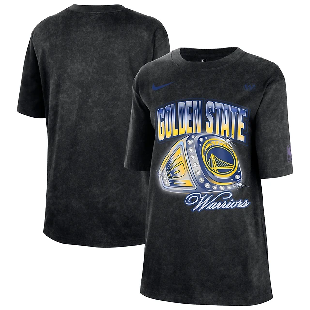 Women's Nike Black Golden State Warriors Courtside Original Content Vintage Washed Boyfriend T-Shirt