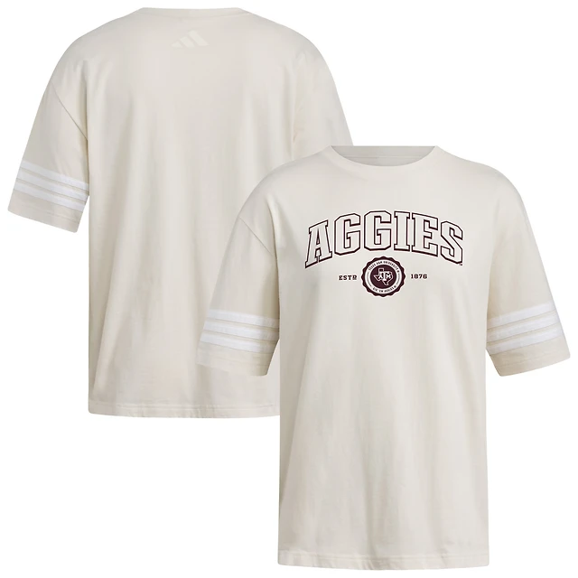 Women's adidas Cream Texas A&M Aggies Fashion Three-Stripes Oversized T-Shirt