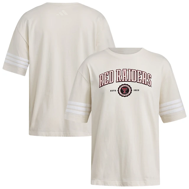 Women's adidas Cream Texas Tech Red Raiders Fashion Three-Stripes Oversized T-Shirt