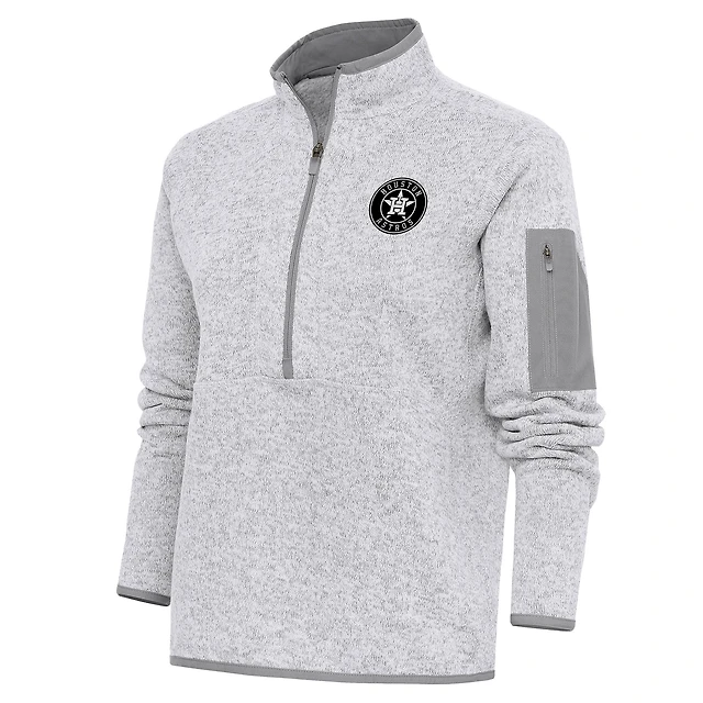 Women's Antigua Heather Gray Houston Astros Brushed Metallic Fortune Half-Zip Pullover Jacket