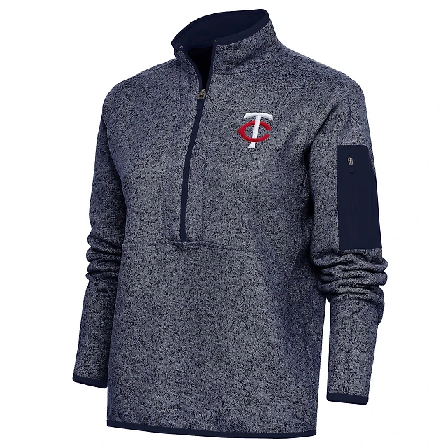Women's Antigua Heather Navy Minnesota Twins Fortune Quarter-Zip Pullover Jacket