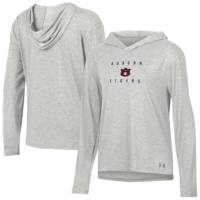 Women's Under Armour Heather Gray Auburn Tigers Super-Soft Breezy Long Sleeve Tri-Blend Hoodie T-Shirt