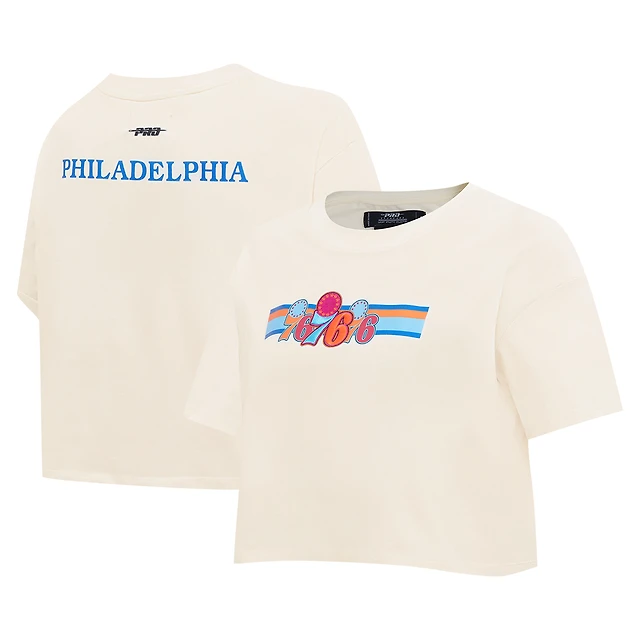 Women's Pro Standard Cream Philadelphia 76ers Retro Striper SJ Cropped Boxy T-Shirt