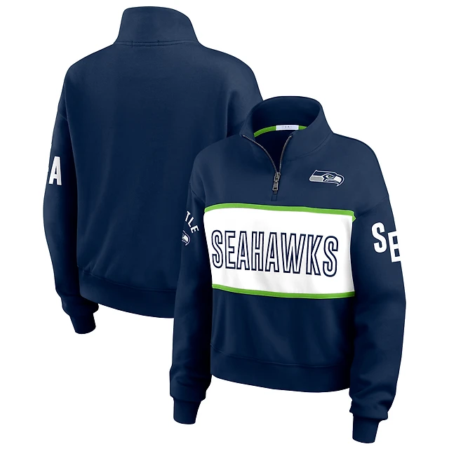 Women's WEAR by Erin Andrews College Navy Seattle Seahawks Quarter-Zip Jacket