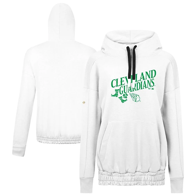 Women's Levelwear White New York Mets St. Patrick's Day Waterfall Boots Pullover Hoodie