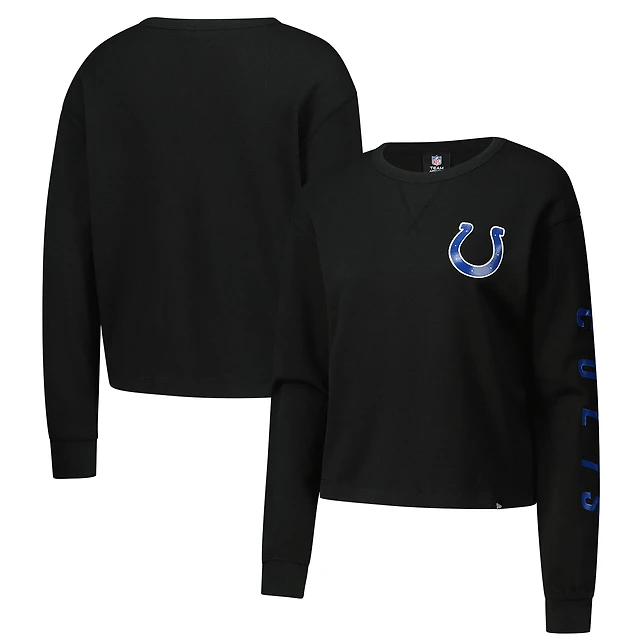 Women's New Era Black Indianapolis Colts Sport Night Thermal Long Sleeve Cropped T-Shirt