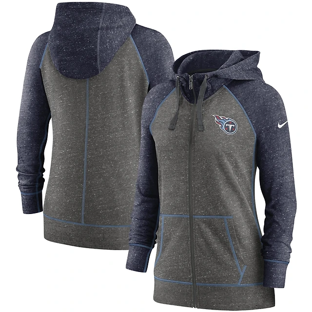 Women's Nike Heathered Charcoal/Navy Tennessee Titans Gym Vintage Raglan Full-Zip Hoodie