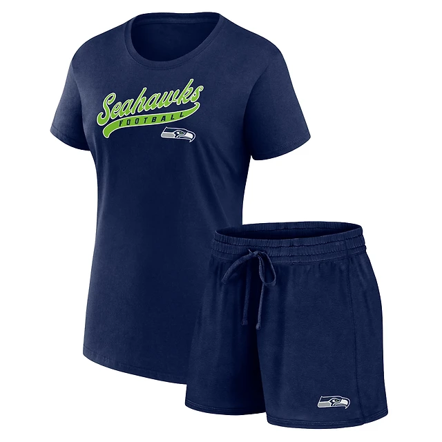 Women's Fanatics College Navy Seattle Seahawks Start to Finish T-Shirt & Shorts Combo Pack