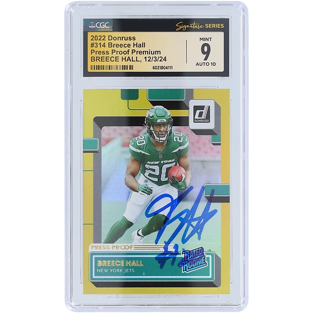 Breece Hall New York Jets Autographed 2022 Panini Donruss Press Proof Premium #314 CGC Fanatics Witnessed Authenticated 9/10 Rookie Card