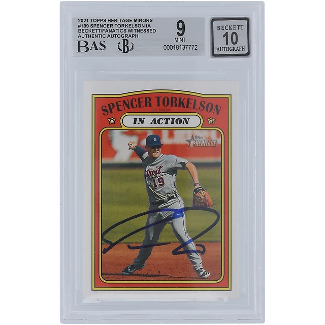 Spencer Torkelson Detroit Tigers Autographed 2021 Topps Heritage #189 Beckett Fanatics Witnessed Authenticated 9/10 Card