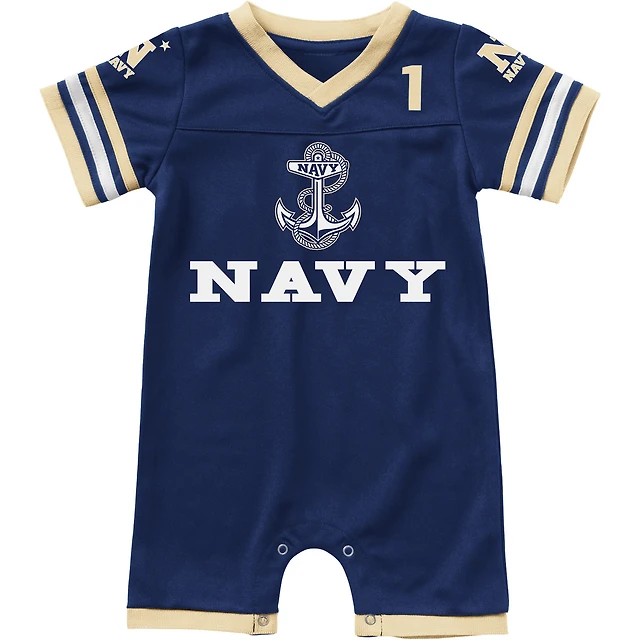 Newborn & Infant Colosseum Navy Midshipmen Bumpo Football Logo Romper