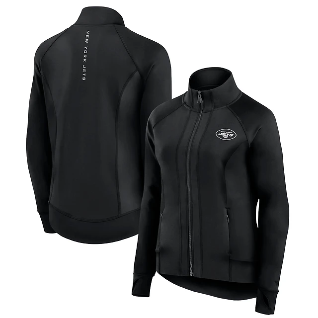 Women's Fanatics Black New York Giants Studio Fitted Full-Zip Gym Track Jacket