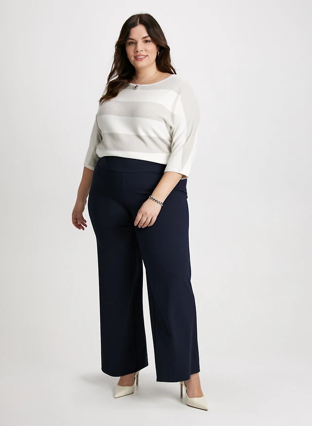 Boat Neck Eyelet Top & Side Slit Pull-On Pants