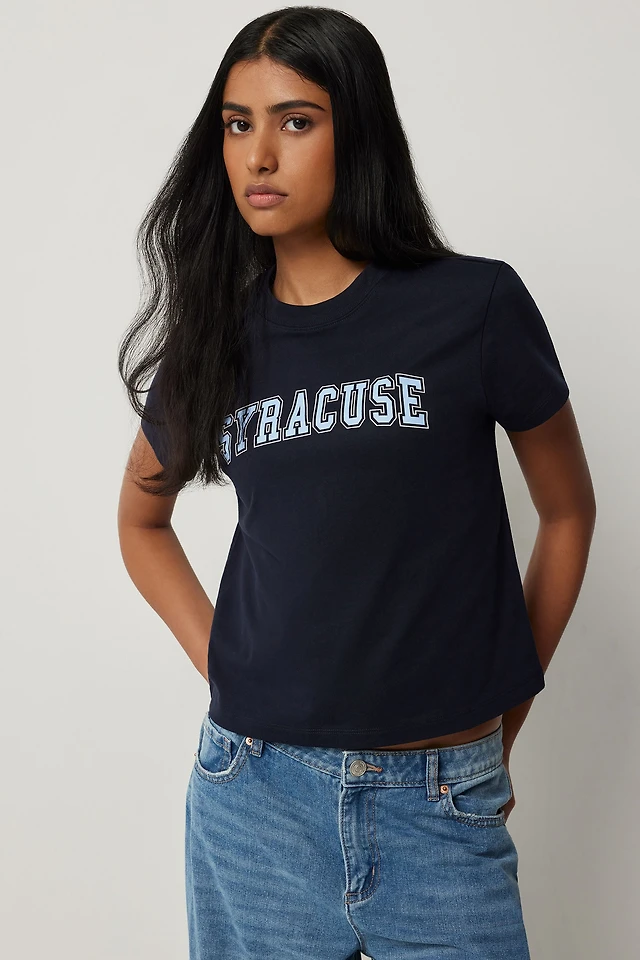 Ardene Ringer T-Shirt with Lettering in Dark Blue | Size | 100% Cotton